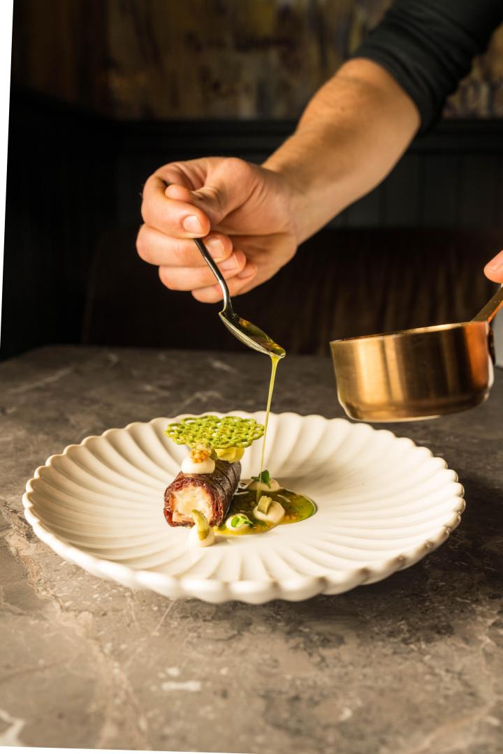 Im Restaurant De Jaeger kommen Leidenschaft, Innovation und Gastfreundschaft zu einem einzigartigen kulinarischen Erlebnis zusammen. Chefkoch und Inhaber Joeri Hukker lebt und atmet Fine Dining. Seine Hingabe an das Handwerk begann in jungen Jahren und entwickelte sich zu einer lebenslangen Mission, seine Liebe zum Kochen zu teilen. Jetzt verwirklicht er seinen großen Traum: Ein eigenes Restaurant und Hotel im Herzen von Ruurlo, wo Gastronomie und Gastfreundschaft Hand in Hand gehen. Mit tiefem Respekt vor saisonalen Zutaten kreiert Joeri Überraschungsmenüs, die die Sinne anregen. Erwarten Sie kein Standardmenü, sondern ein viergängiges Menü, das sich vollständig von dem leiten lässt, was die Saison zu bieten hat. Für diejenigen, die möchten, besteht die Möglichkeit, das Menü auf sechs Gänge zu erweitern. Jedes Gericht ist ein Meisterwerk, in dem klassische Techniken und moderne Stile sich vereinen. Die warme, bodenständige Gastfreundschaft des jungen und enthusiastischen Teams schafft eine Atmosphäre, in der sich jeder Gast zu Hause fühlt. Für diejenigen, die nach einem besonders besonderen Moment suchen, bietet De Jaeger zwei Private Dining Rooms, jeweils mit Platz für sechs oder acht Personen, zusammen für vierzehn Gäste. Die Räume sind durch eine Verbindungstür miteinander verbunden, die geöffnet werden kann, wodurch Flexibilität für größere Gruppen besteht. Mit De Jaeger möchte Joeri nicht nur seine Leidenschaft für das Kochen teilen, sondern auch ein vollständiges Erlebnis bieten, bei dem alles zusammenpasst.